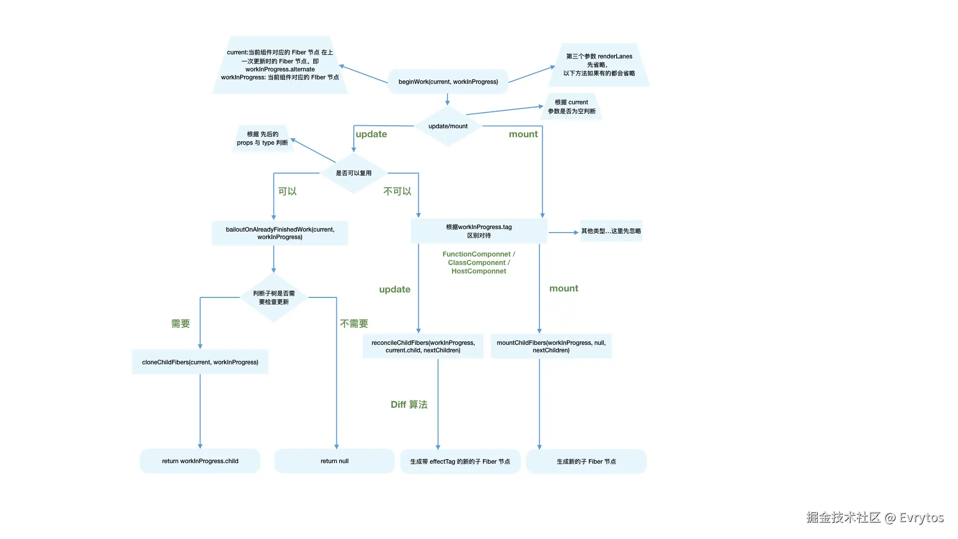 - 如果有子节点(child)则继续执行子节点的 beginWork