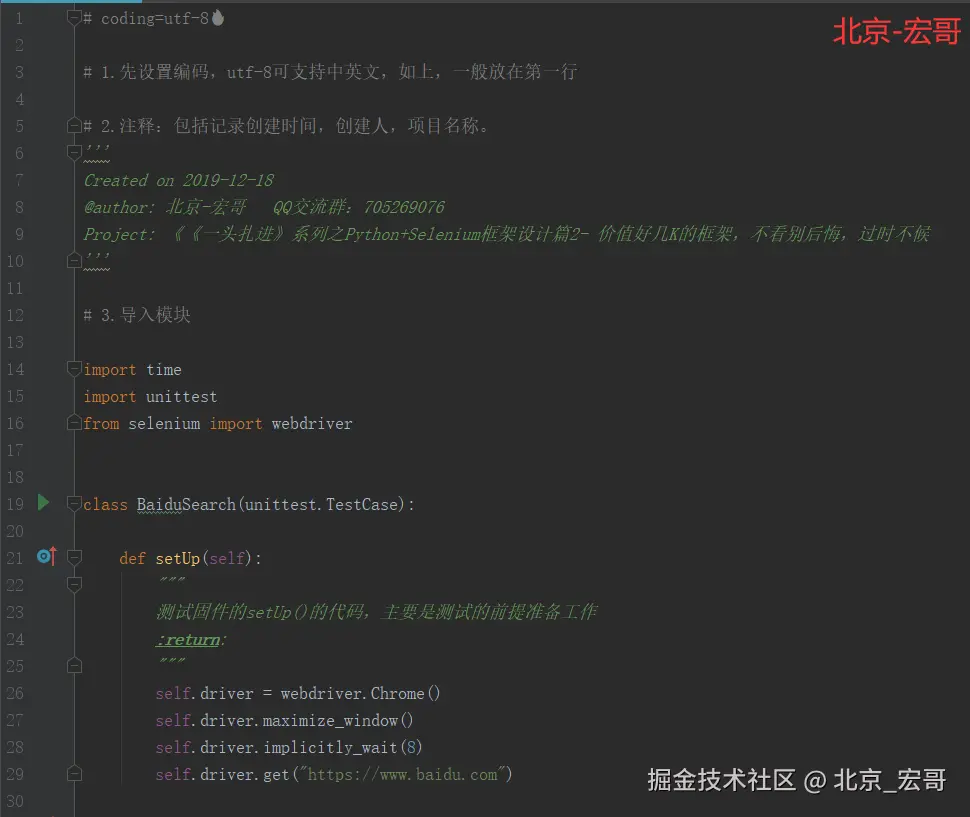 上一篇介绍了自动化框架的架构,今天宏哥就带领小伙伴或者童鞋们开始开工往这个框架里开始添砖加瓦。主要是介绍一个框架unittest单元测试框架和一种设计思想POM。