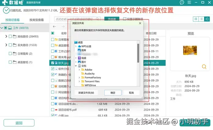 步骤3:在弹窗中选择恢复文件的新存放位置,不能将其放回U盘哦。