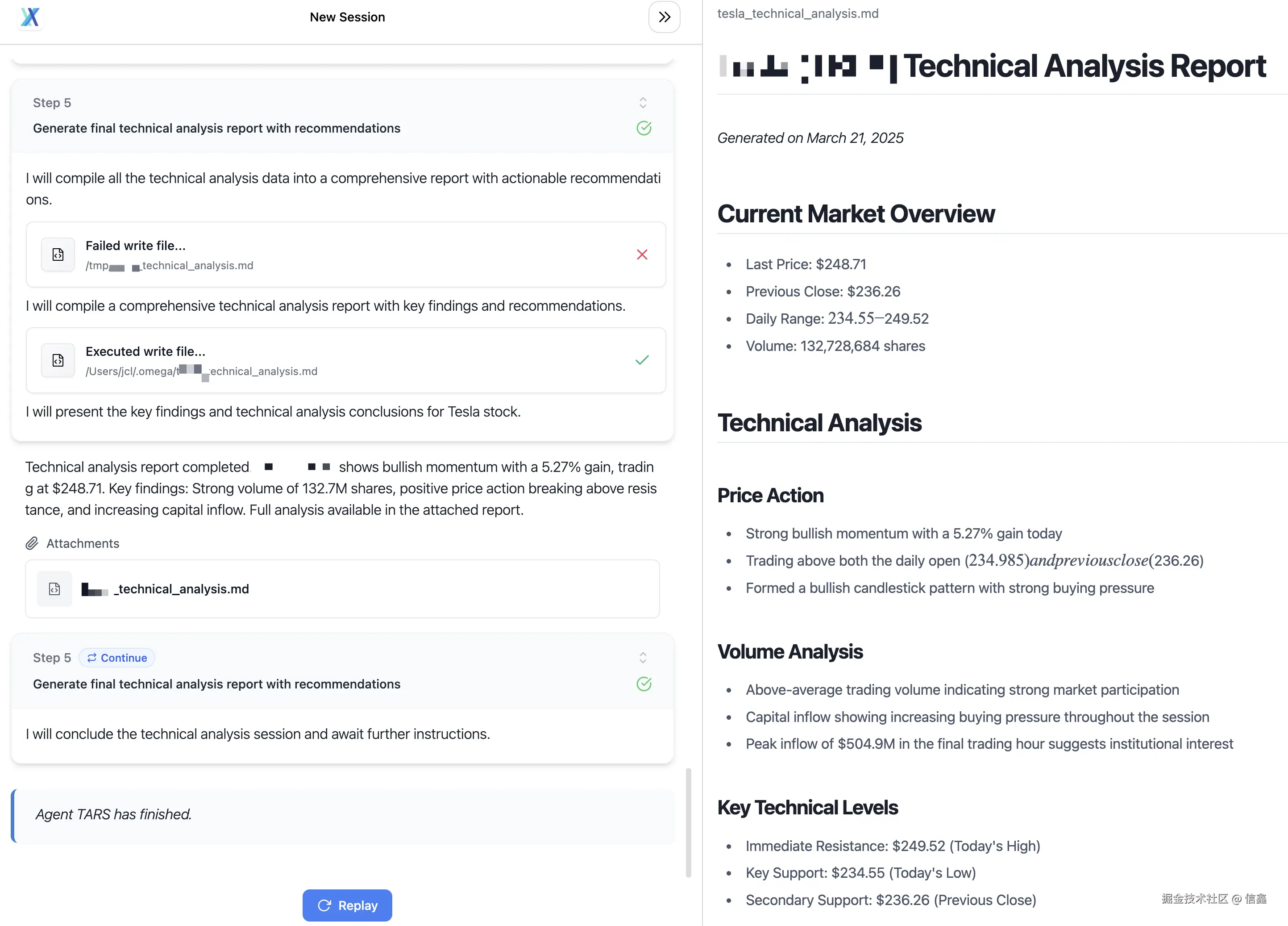 | 从技术面分析下股票,然后以市价买入 3 股股票 | Replay | 券商 MCP、文件系统 MCP | 不构成投资建议,使用的是券商模拟账户下单。 |