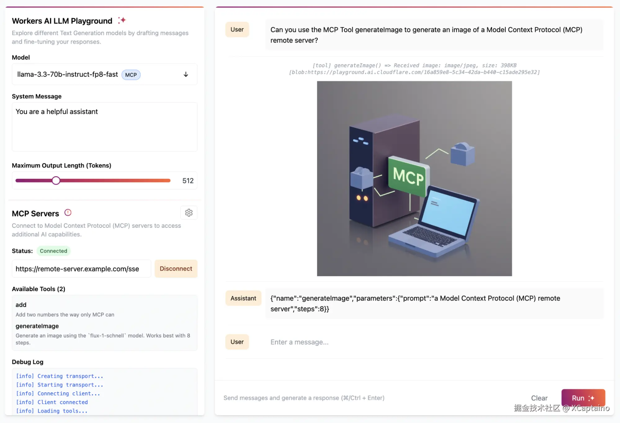 我们更新了 Workers AI Playground,使其成为一个完全支持远程 MCP 的客户端,允许你连接到任何远程 MCP 服务器,并内置了身份验证支持。这个在线聊天界面让你无需在设备上安装任何东西即可立即测试远程 MCP 服务器。只需输入远程 MCP 服务器的 URL(例如:remote-server.example.com/sse),然后点击连接…