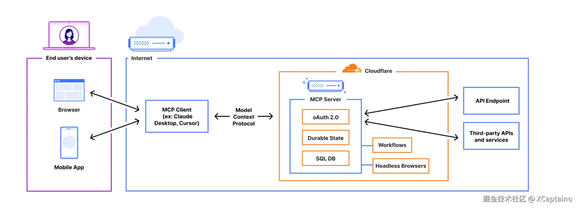 在 MCP 服务器内部,你可以使用 Cloudflare 的整个开发者平台,并让 MCP 服务器启动自己的网络浏览器、触发工作流、调用 AI 模型等。我们期待看到 MCP 生态系统发展出更高级的应用场景。
