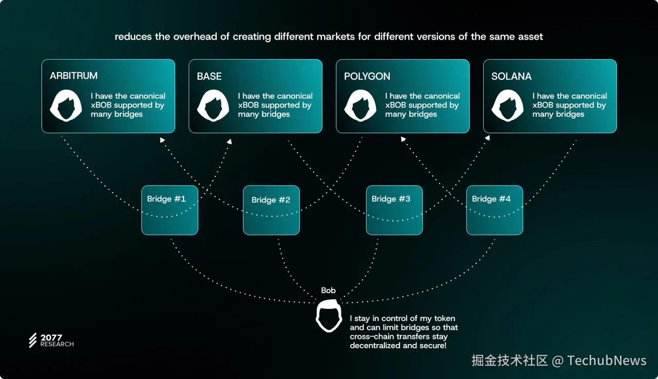 3.零流动性依赖的跨链代币冷启动:协议 DAO 不应被迫将大量(资金)资源用于引导跨链代币的流动性,作为多链扩展计划的一部分。基于流动性的跨链不仅不利于用户体验,而且随着支持链数量的迅速增加,项目方在流动性提供激励方面的支出可能变得不可行。
