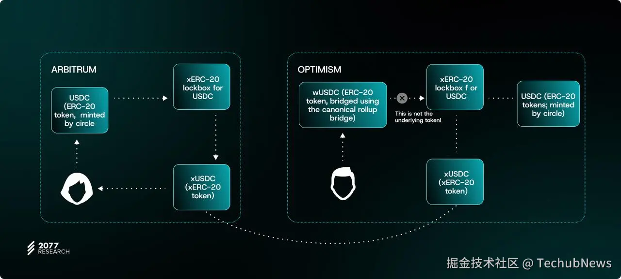 - 跨链桥提供商销毁 Arbitrum 链的 xERC-20 代币后,可以在 Optimism 铸造等量代币;