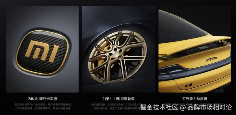 小米通过详细解析SU7 Ultra的设计方案和硬件配置,如介绍三电机四驱系统、全碳车身、空气动力学套件、纯金车标等,高端“堆料”让高价值可以更直观感知。同时,通过成本透明化计算(如公开电池成本、电机研发投入等),让消费者感知到“每一分钱都用在刀刃上”,进一步强化价值认同。