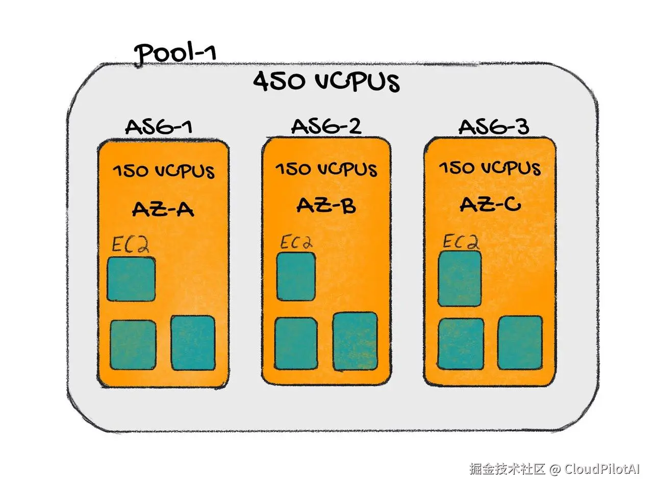 每个池由一组 AWS Auto Scaling Group(ASG) 提供支持, 扩缩逻辑基于一个核心配置——设定值(Setpoint),它表示“工作负载请求的资源量”与“集群可配置的总资源量”之间期望的资源预留比例。