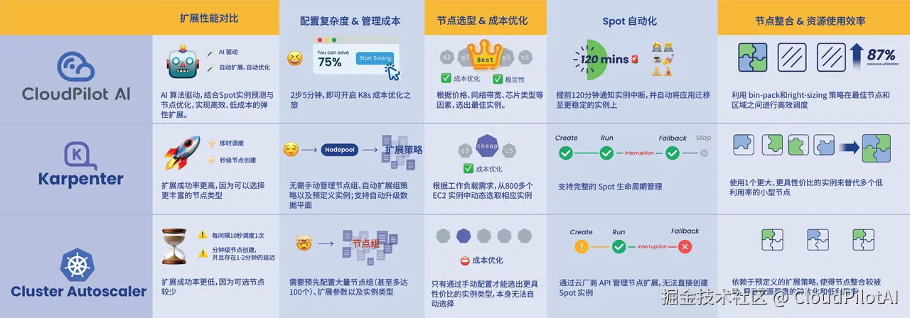 如果你想了解这几款工具的更多技术细节、查看 Karpenter 与 Cluster Autoscaler 的架构差异,回复关键词【对比】,获取完整版 PDF 文件。