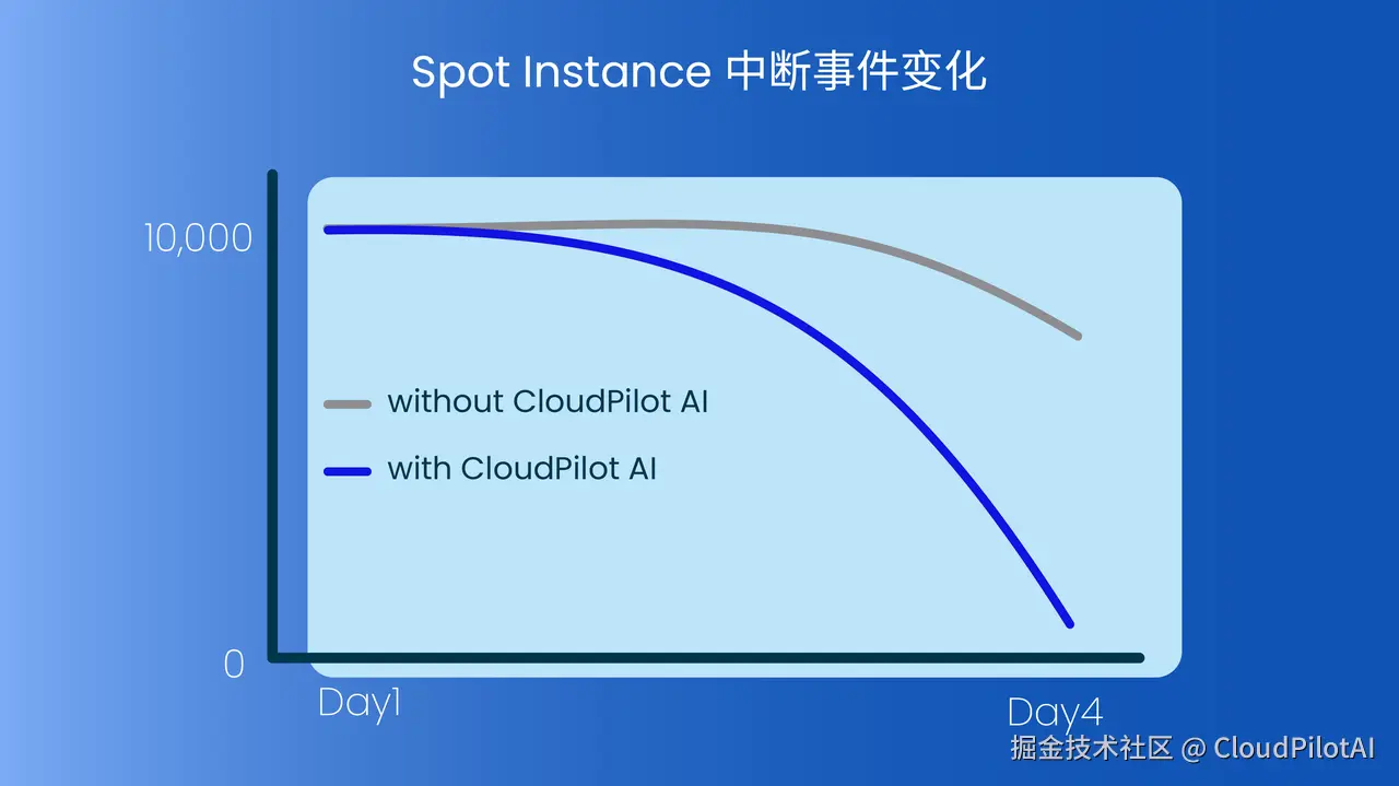 最终,CloudPilot AI 通过不断学习,持续优化,使得用户环境中的 Spot 实例的中断风险近乎归零。