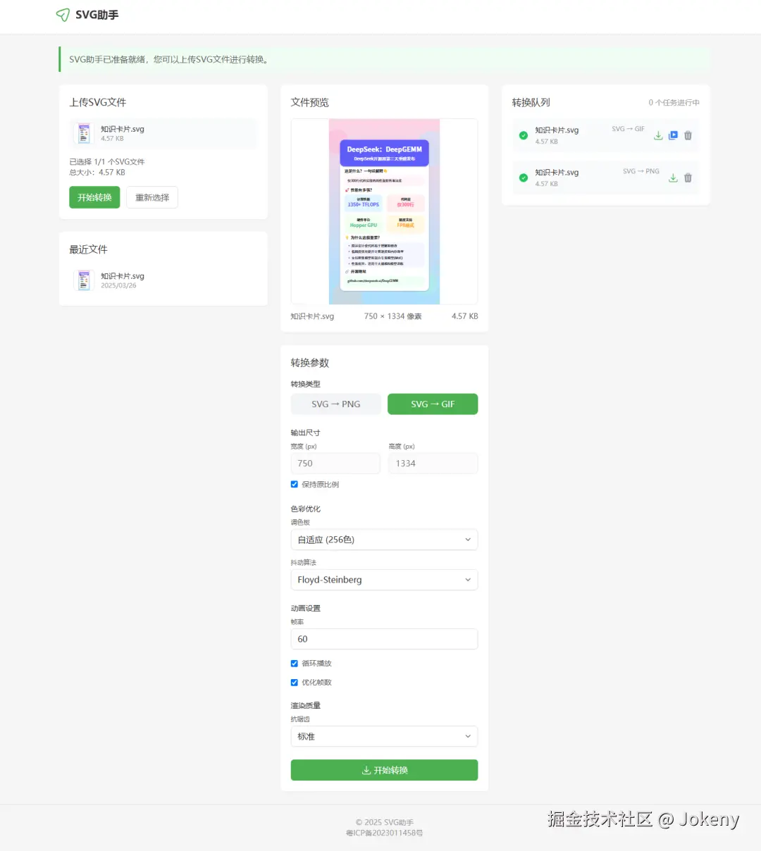 动态SVG转GIF:对于动态SVG文件,网站同样支持一键转换为GIF格式,完美保留了原始动画效果。