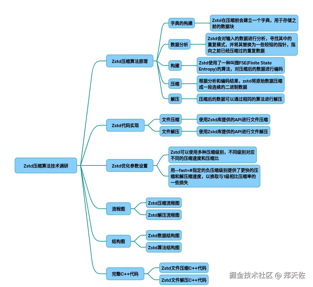 以下为Zstandard(zstd)压缩算法从原理到代码实现的技术调研报告,结合流程图、结构图及完整C++代码实现:
