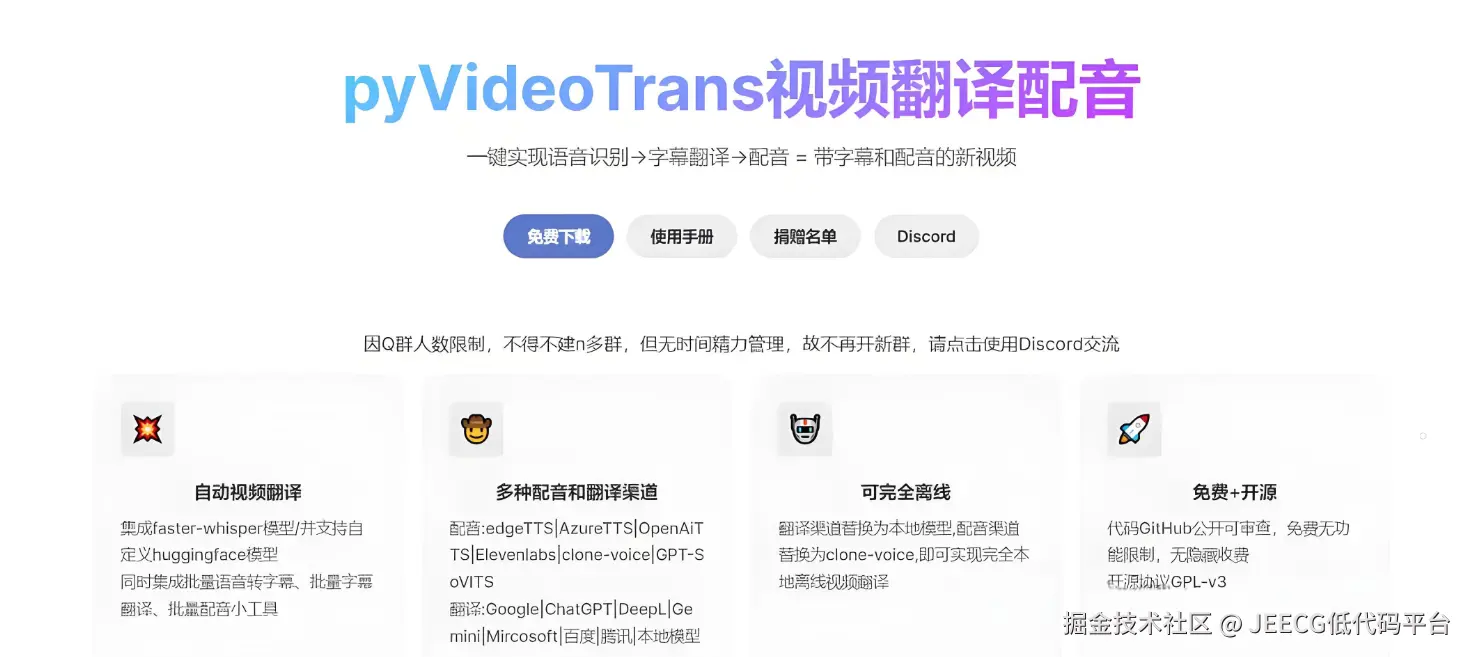 这是一个视频翻译配音工具,可将一种语言的视频翻译为指定语言的视频,自动生成和添加该语言的字幕和配音。