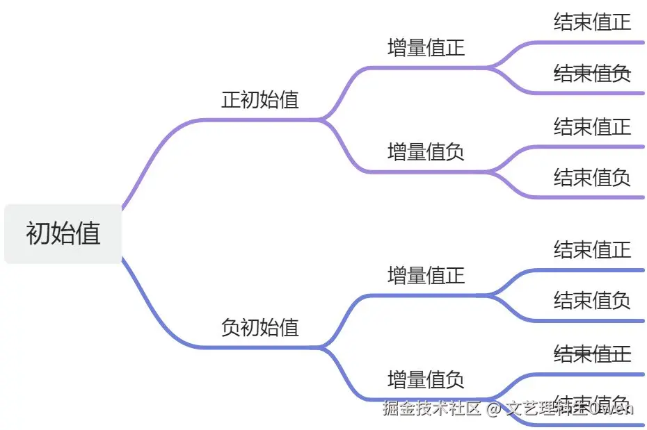- 初值值负 -> 增量值负 -> 结果值负