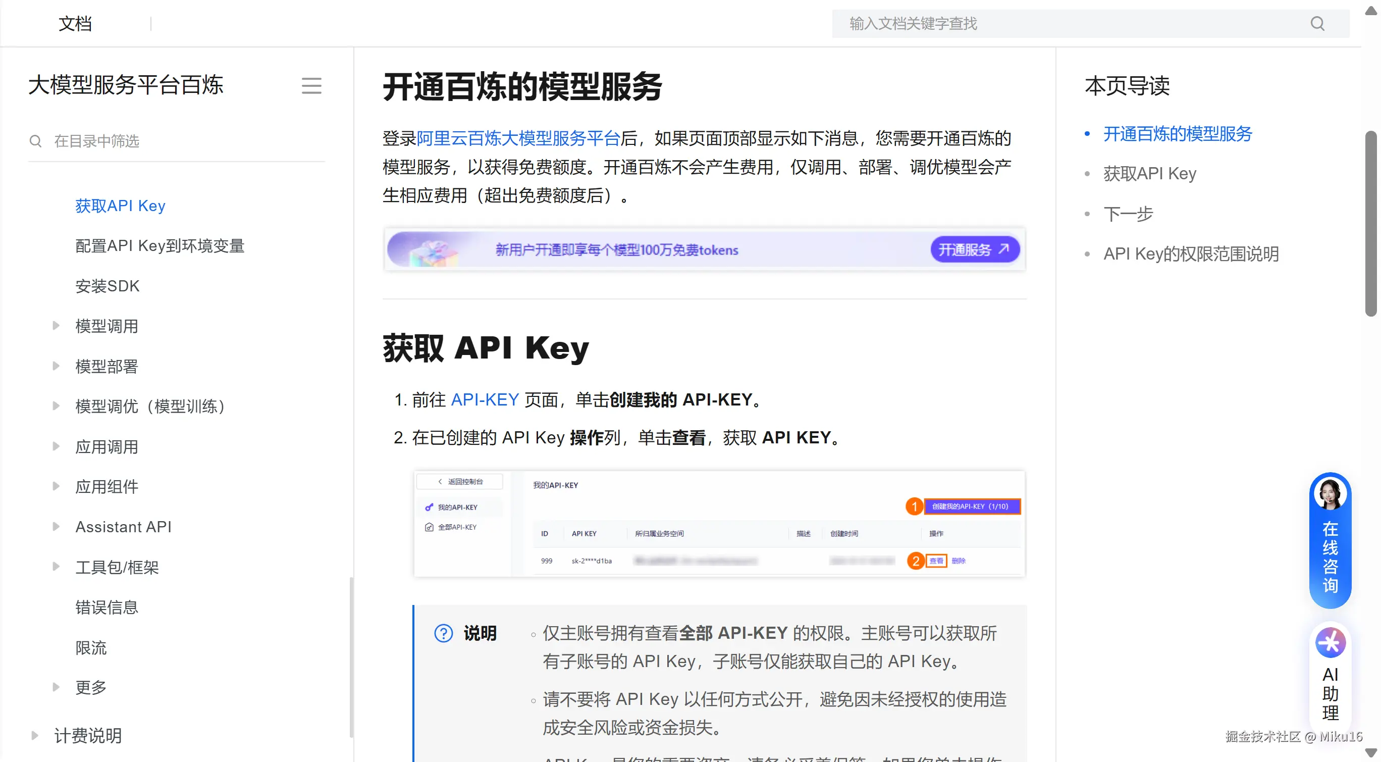 按照说明,登录阿里云百炼大模型服务平台。
