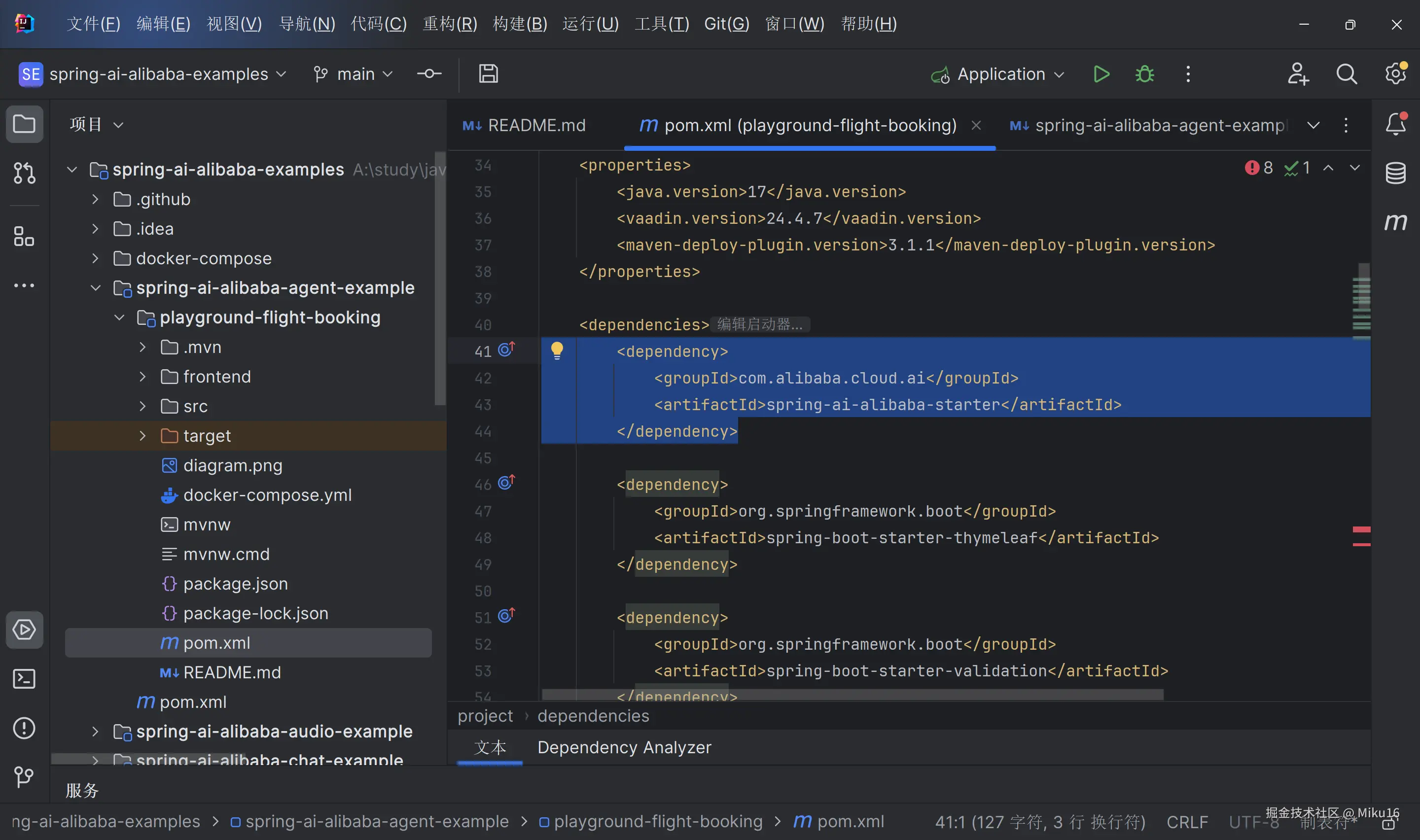 Application.java或在命令行中运行mvn spring-boot:run来运行此应用。将 Spring AI Alibaba boot starter 添加到 POM 文件中: