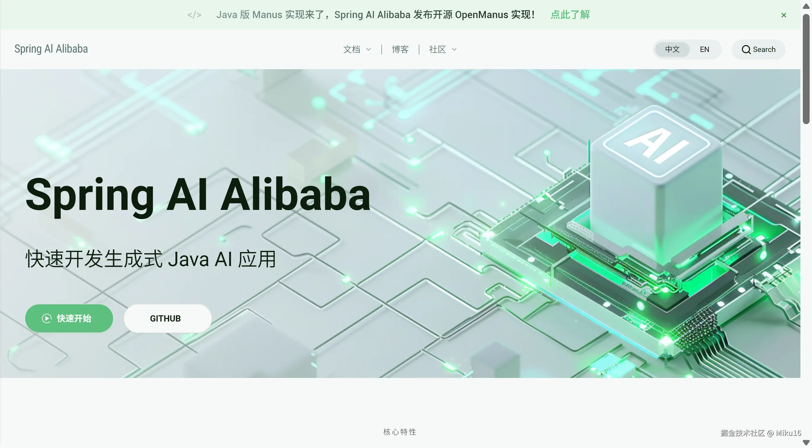 在Spring AI Alibaba主页,点击“快速开始”。