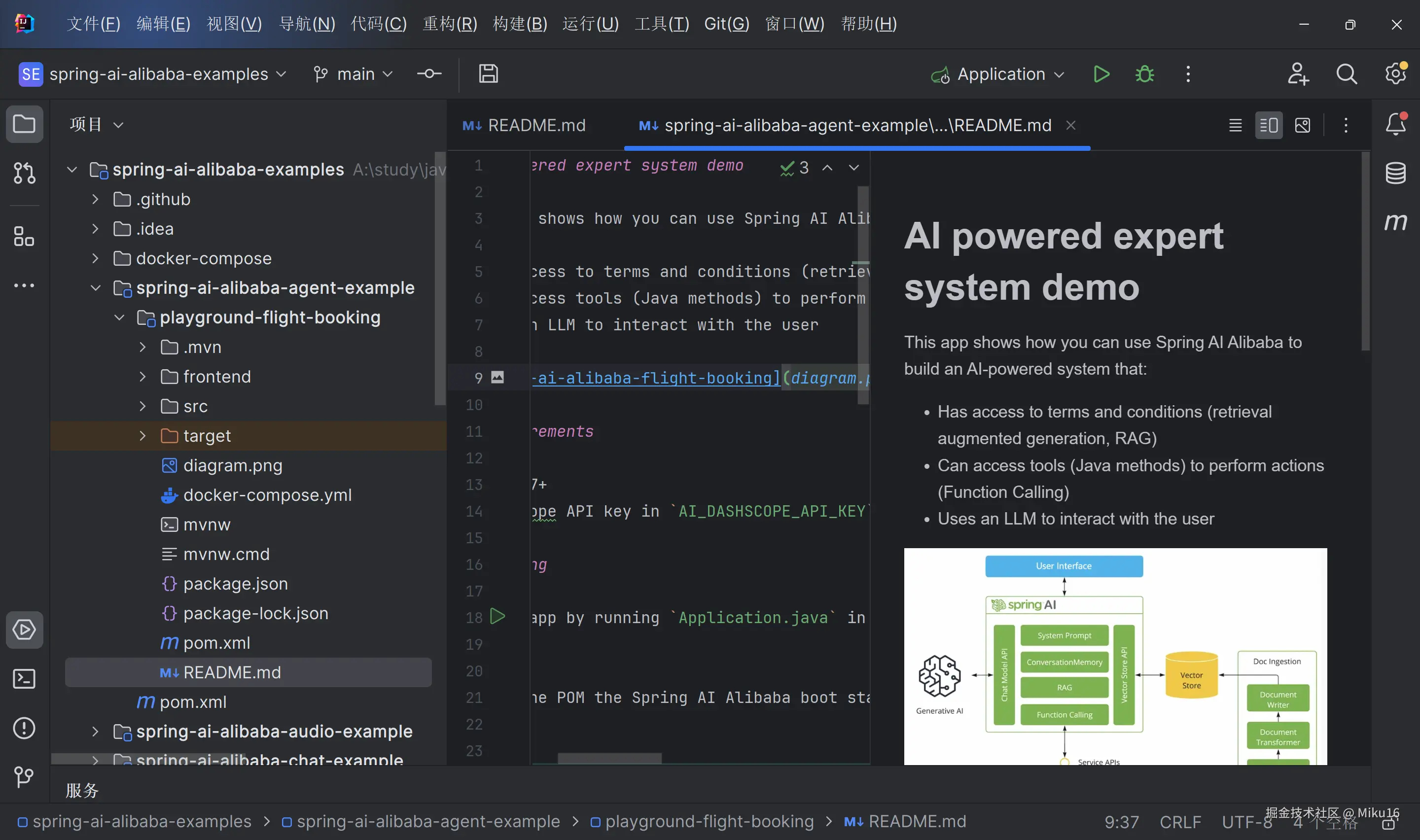 这个应用展示了如何使用 Spring AI Alibaba 构建一个 AI 驱动的系统,它可以: