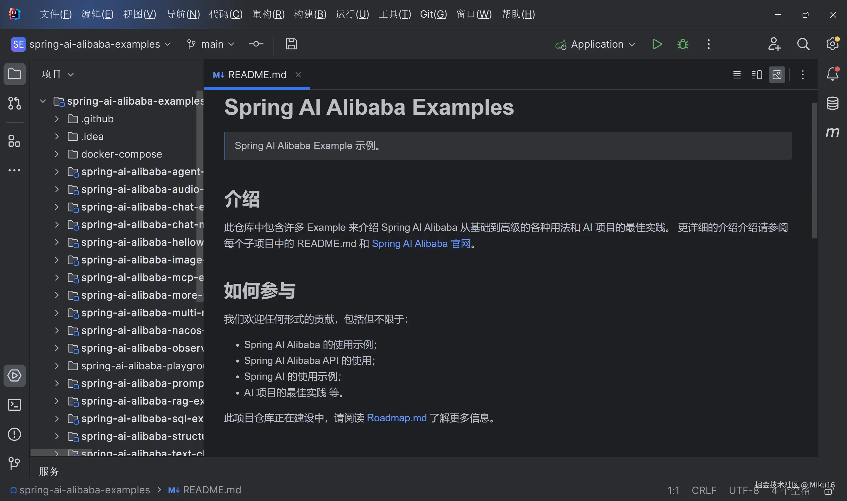 使用git clone --depth=1 https://github.com/springaialibaba/spring-ai-alibaba-examples.git命令拉取示例程序到本地。