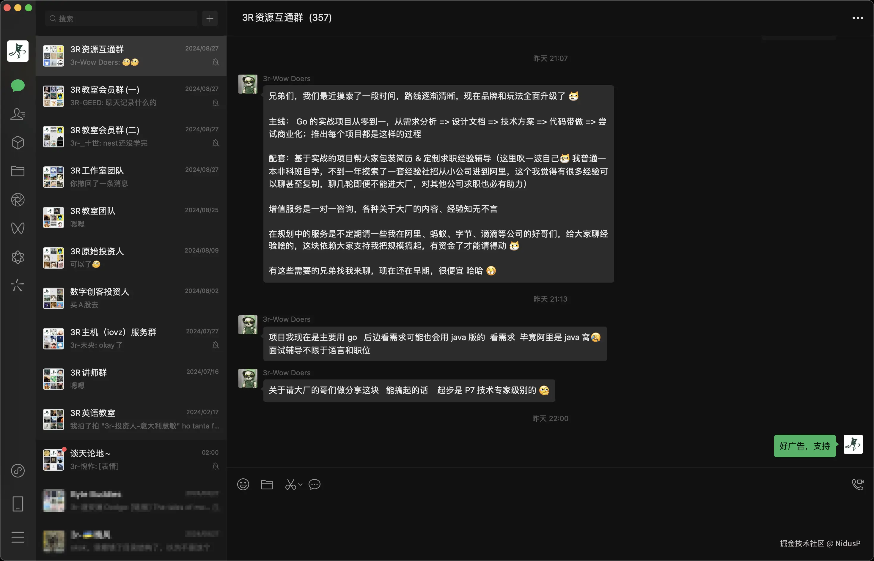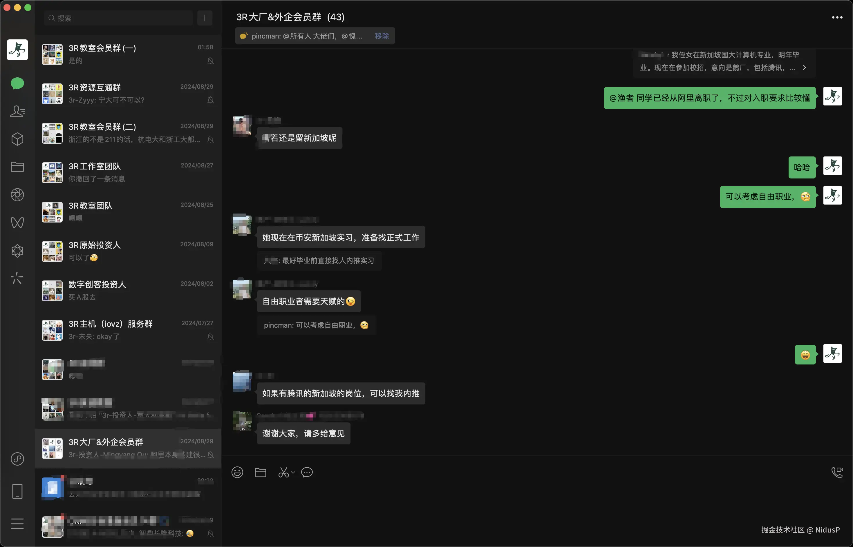 - 招聘求职:发布远程/坐班岗位的招聘/内推信息以及求职意愿,急招的话可以请求站长在两个会员群都发布招聘信息并艾特所有人