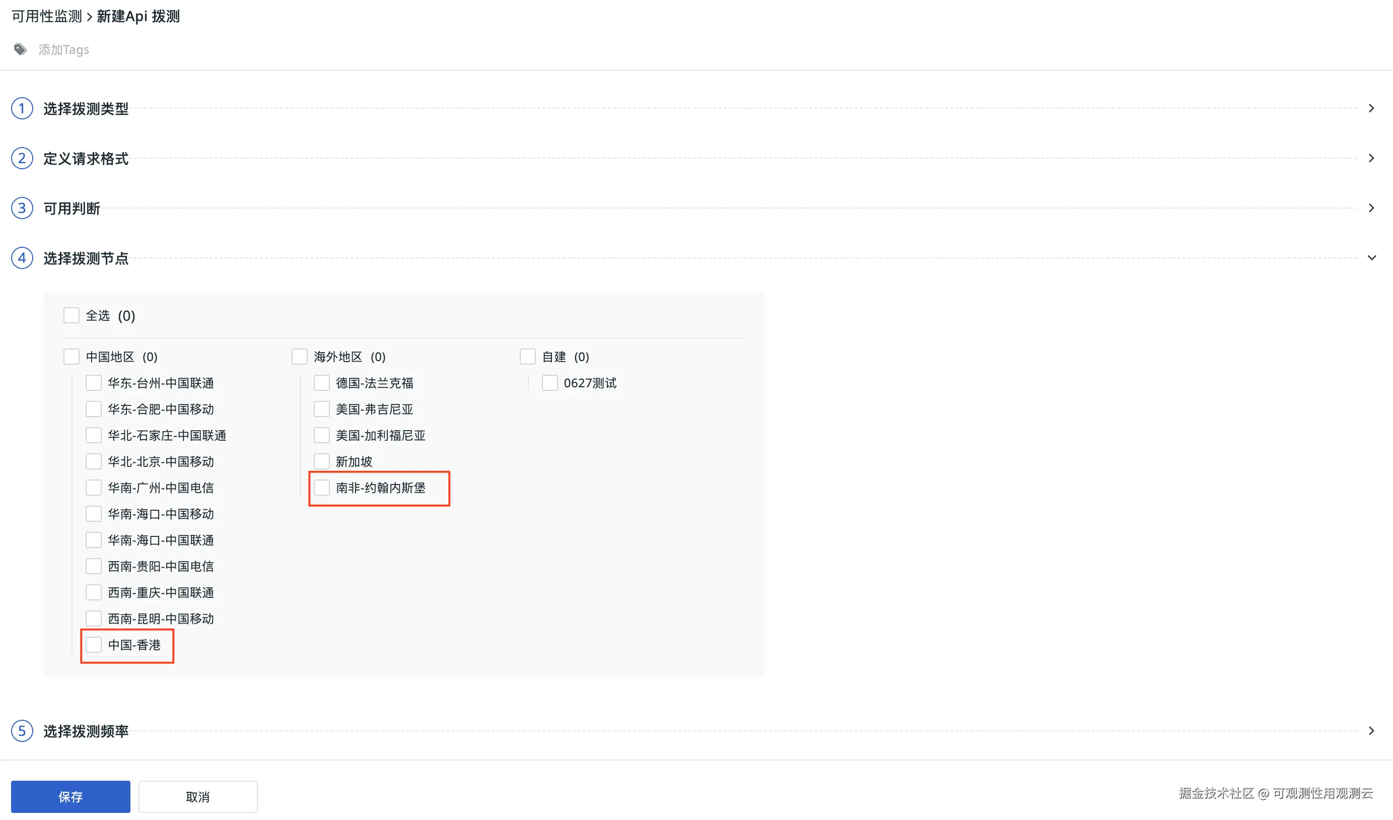 新增“南非”和“中国香港”作为拨测节点,进一步扩展全球覆盖范围。