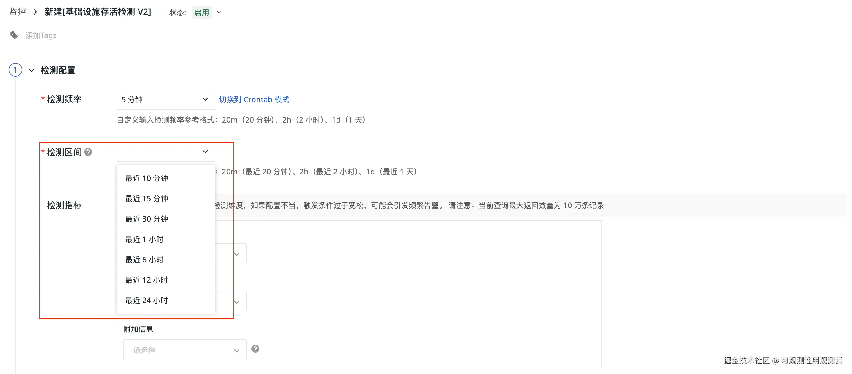 1、基础设施存活检测 V2:新增可配置检测区间。