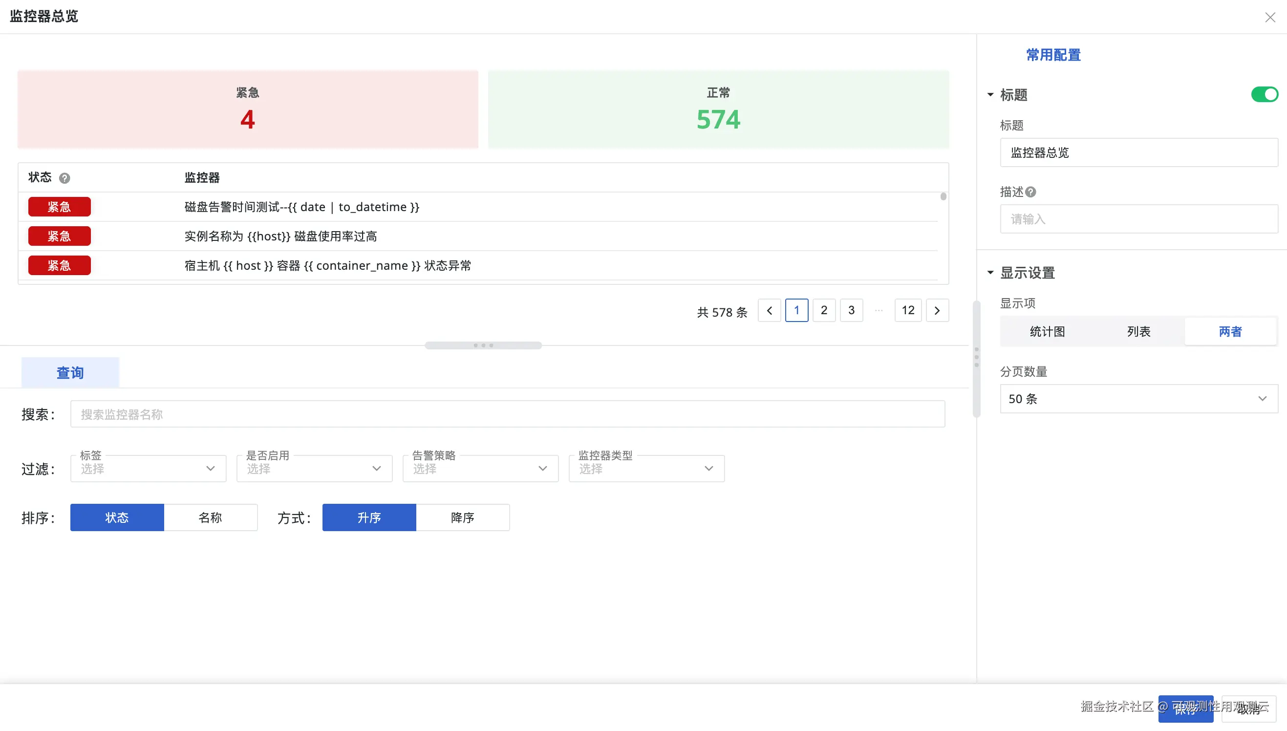 - 新增“监控器总览”图表,集成监控器列表,展示最新状态,实现即时监测与异常态势感知。