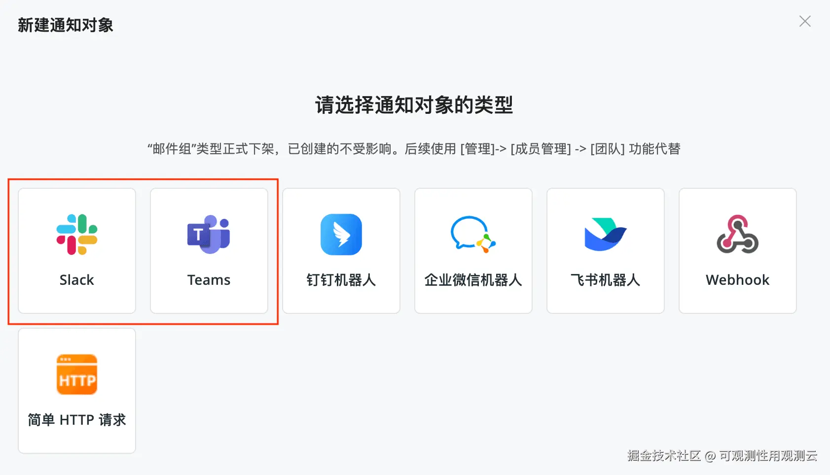 3、通知对象管理:海外站点新增 Slack 和 Teams 两个通知对象,以满足全球更多用户的需求。
