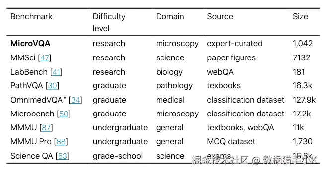 MicroVQA 基准测试属性。