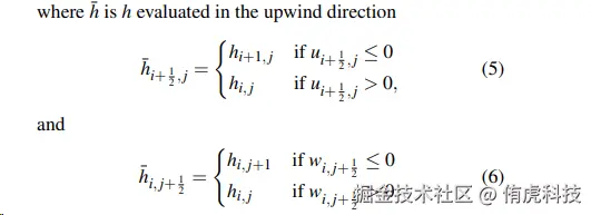 - 浅水方程的动量方程(2)用的是海拔η,质量守恒方程(1)用的是水深h,这正是它可以适用于凹凸不平地形,模拟洪泛的原因。假如我们强行让两方程都用h,那就相当于是假定海拔等于水深,即水底是平面,则不再具备模拟洪泛的能力,但仍可模拟水波。