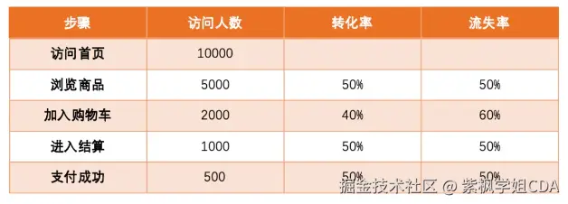 计算完这些数据后,就能清楚地看到哪一步流失最严重。