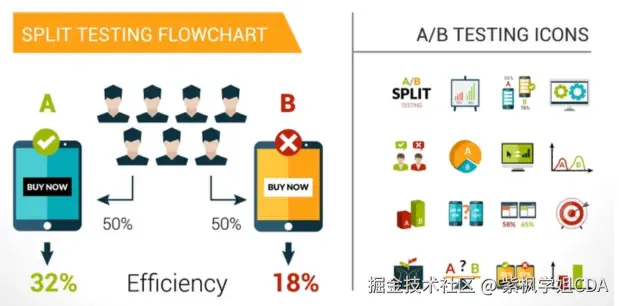 把用户随机分成两组,一组看到原始版本,另一组看到修改后的版本,然后对比它们的转化率变化。