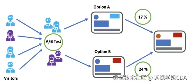 让一部分用户看到旧版页面,另一部分用户看到新设计页面,对比转化率。