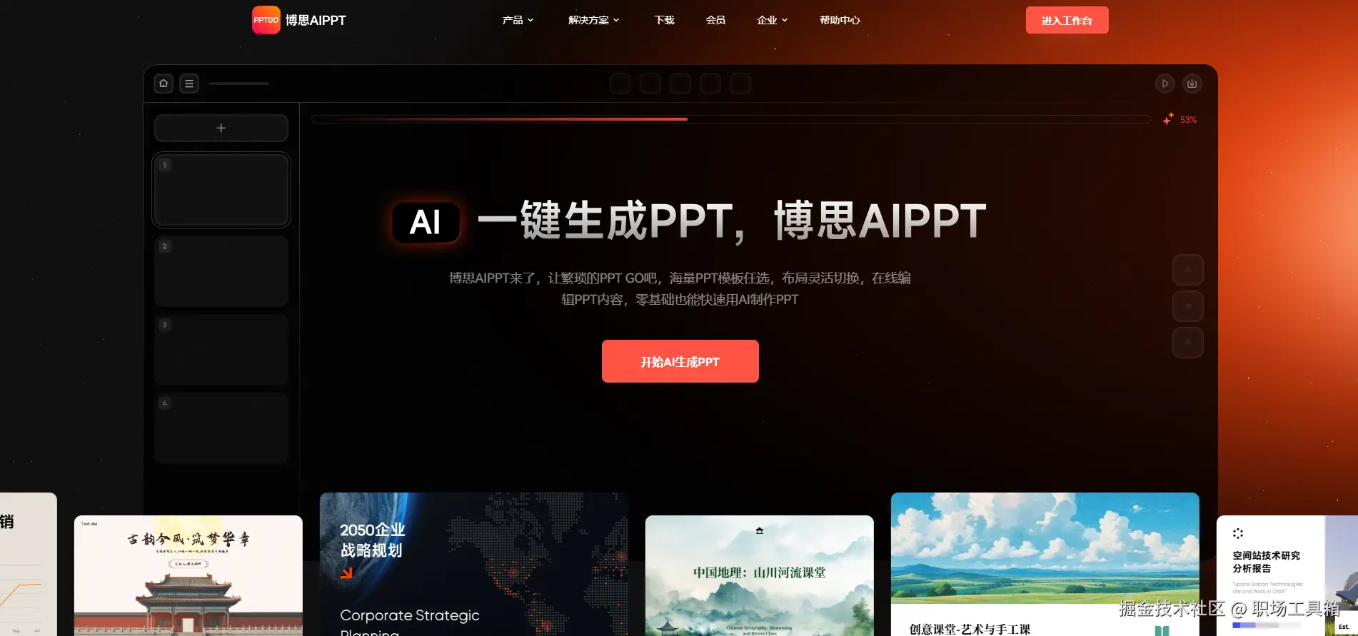 就制作演示文稿而言,ppt生成工具哪个好用?今天这篇文章,将与大家分享在全球范围内拥有良好口碑的5款在线PPT生成工具,它们分别是:博思AIPPT、Gamma、tome、Canva、Figma Slides,其中既有本土产品,也有来自海外团队打造的工具,希望能帮你找到最适合自身需求的软件,彻底告别PPT制作的烦恼。