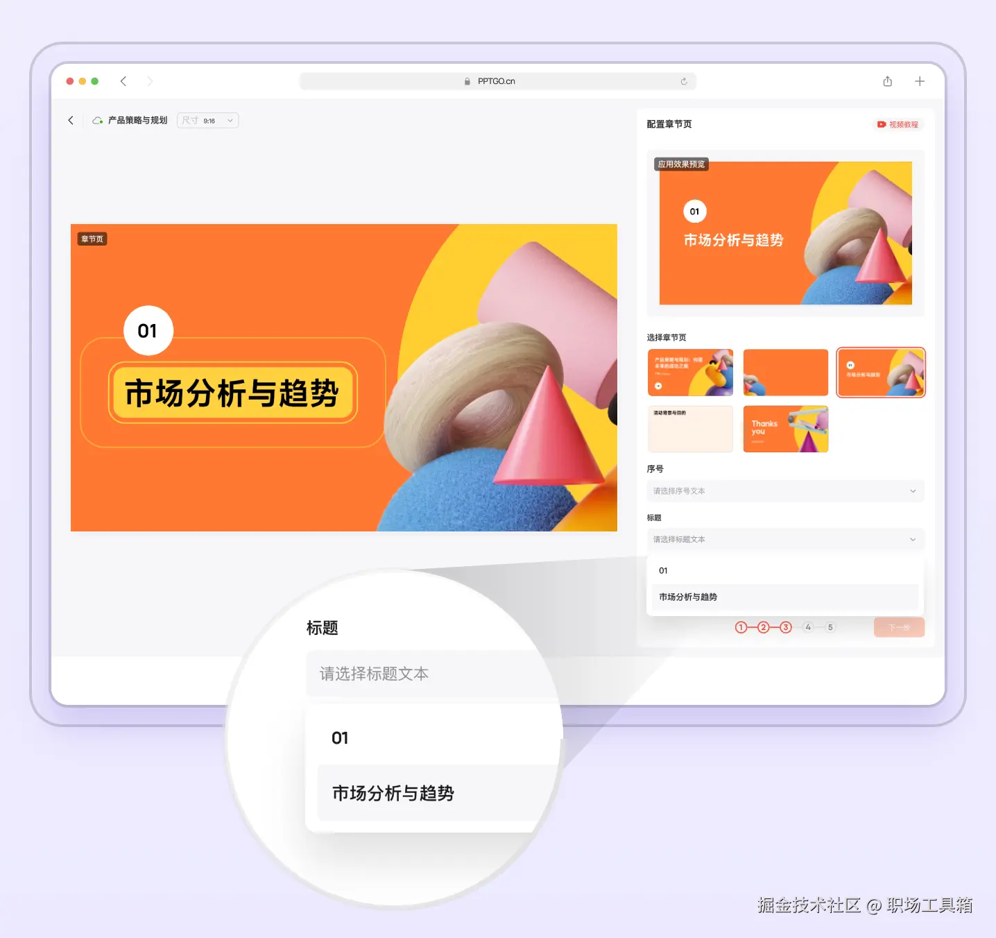 系统提供了多个现成的专业模板、主题和AI驱动的写作工具,帮助用户快速创建出高质量的演示文稿。这些资源经过精心设计,符合现代设计趋势和审美标准。