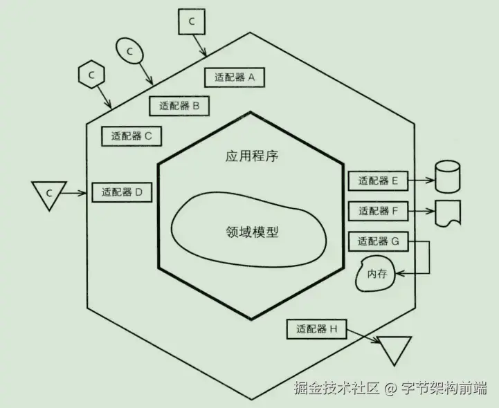 再举个微服务的例子,为什么微服务要做六边形架构,我们运行的程序要实现其稳定性,需要隔离外部经常变化的环境,比如数据库连接方式发生变动、上下游服务变更等,所以最基础的就是将这种和外界交互的东西分层出去,也就形成了六边形架构。将外界交互的部分在适配器实现,然后适配器就是将外界的信息映射为自己领域内。