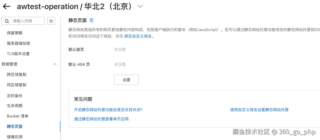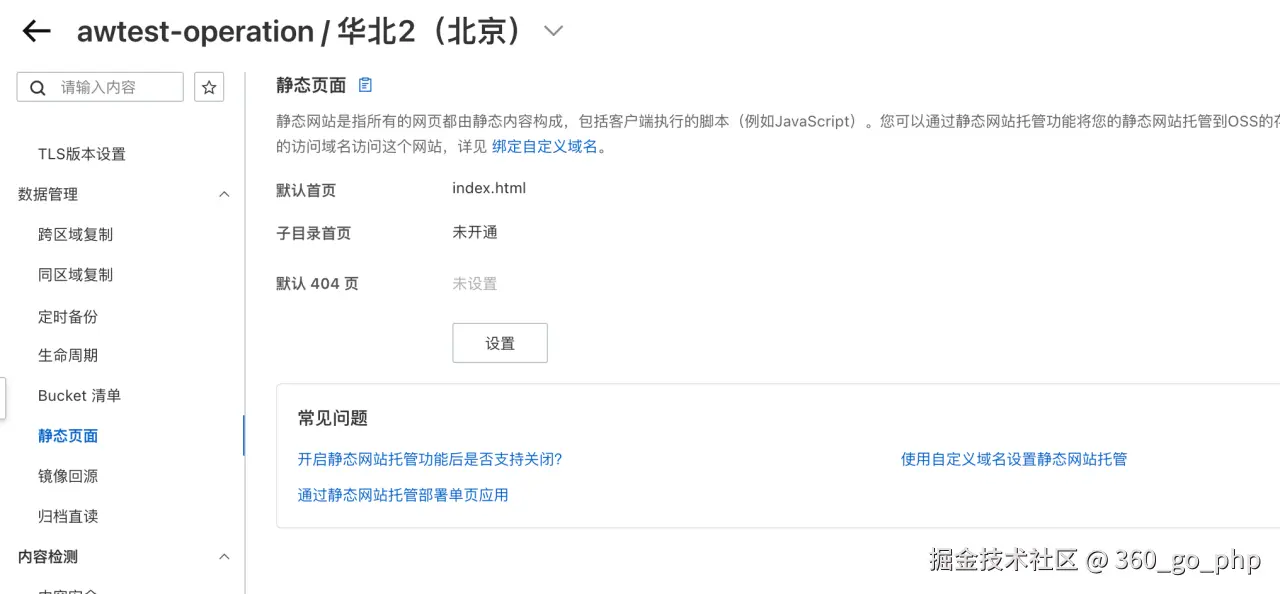 3. 设置 OSS Bucket 为静态网站托管