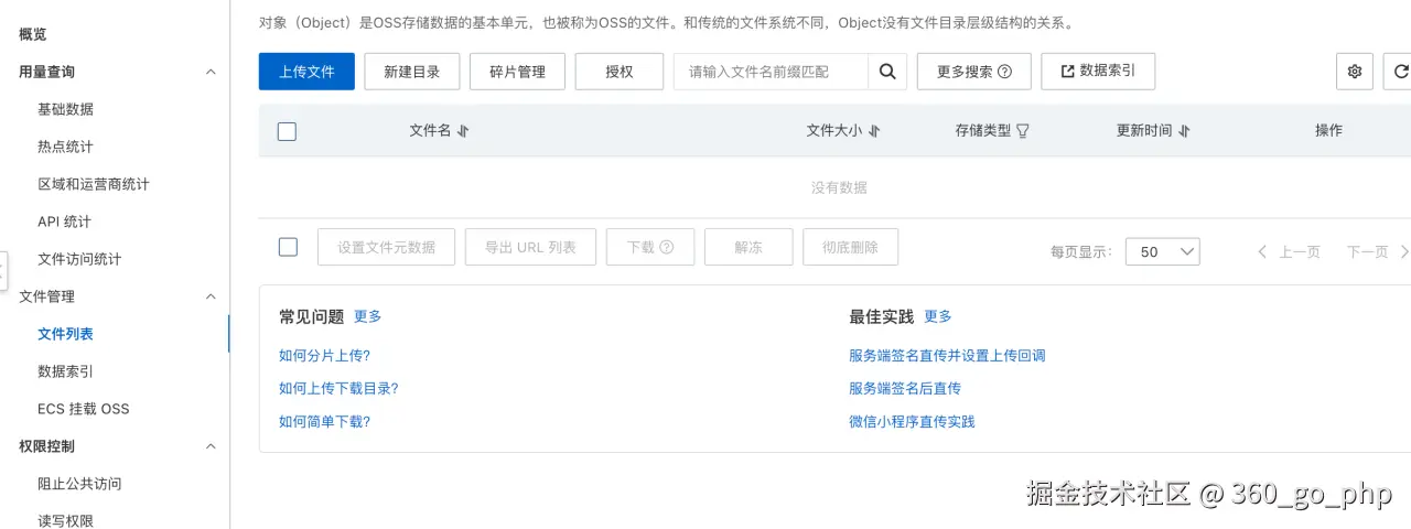 - 在 OSS 控制台,选择刚才创建的存储桶。
