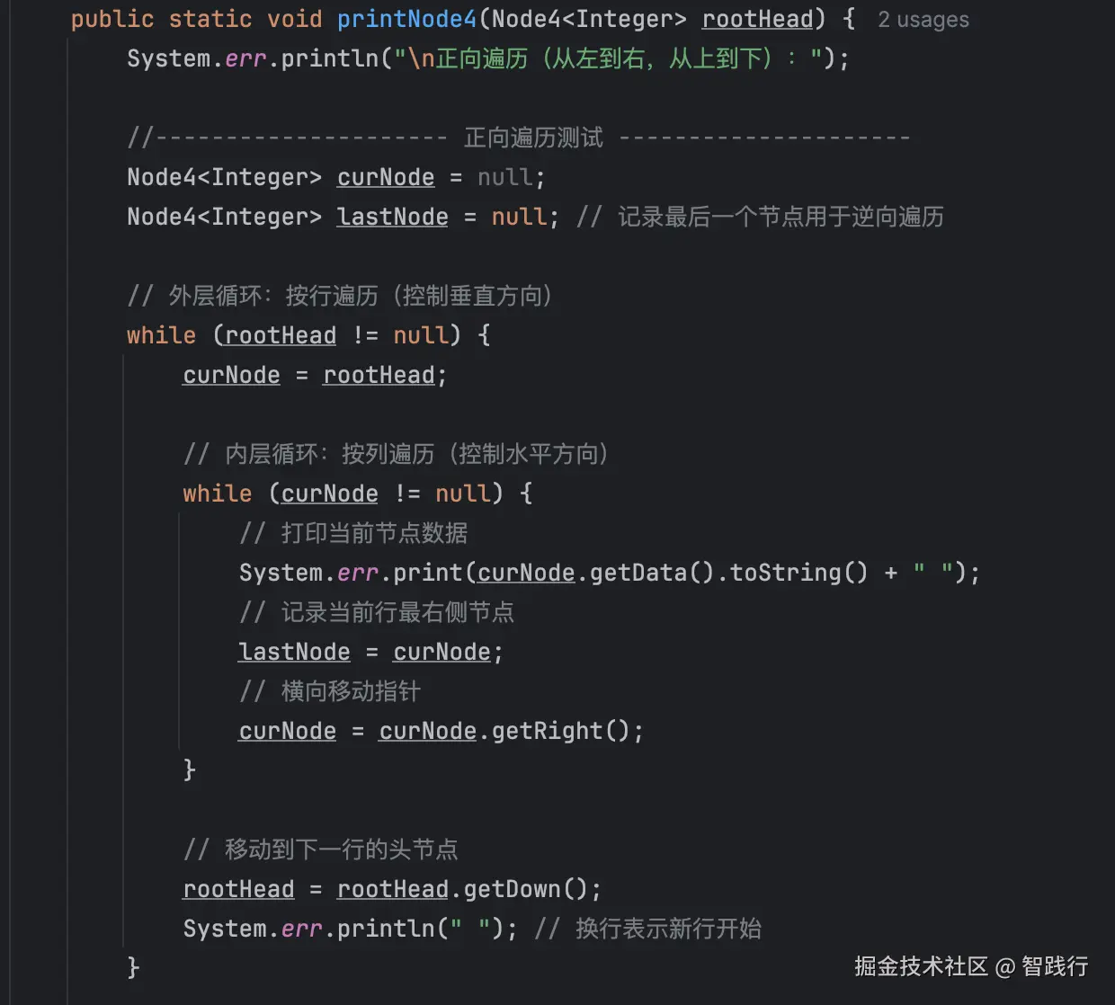 完成生成函数后, 就可以写测试用的遍历函数printNode4。