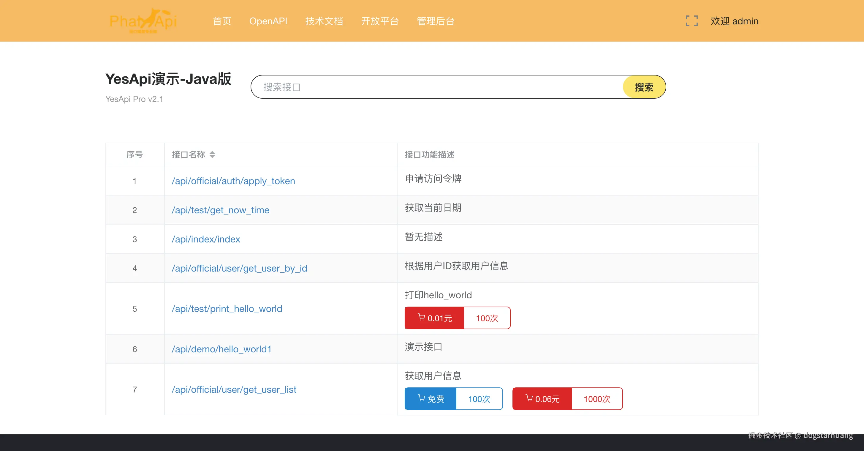 YesApi演示地址-Java版: