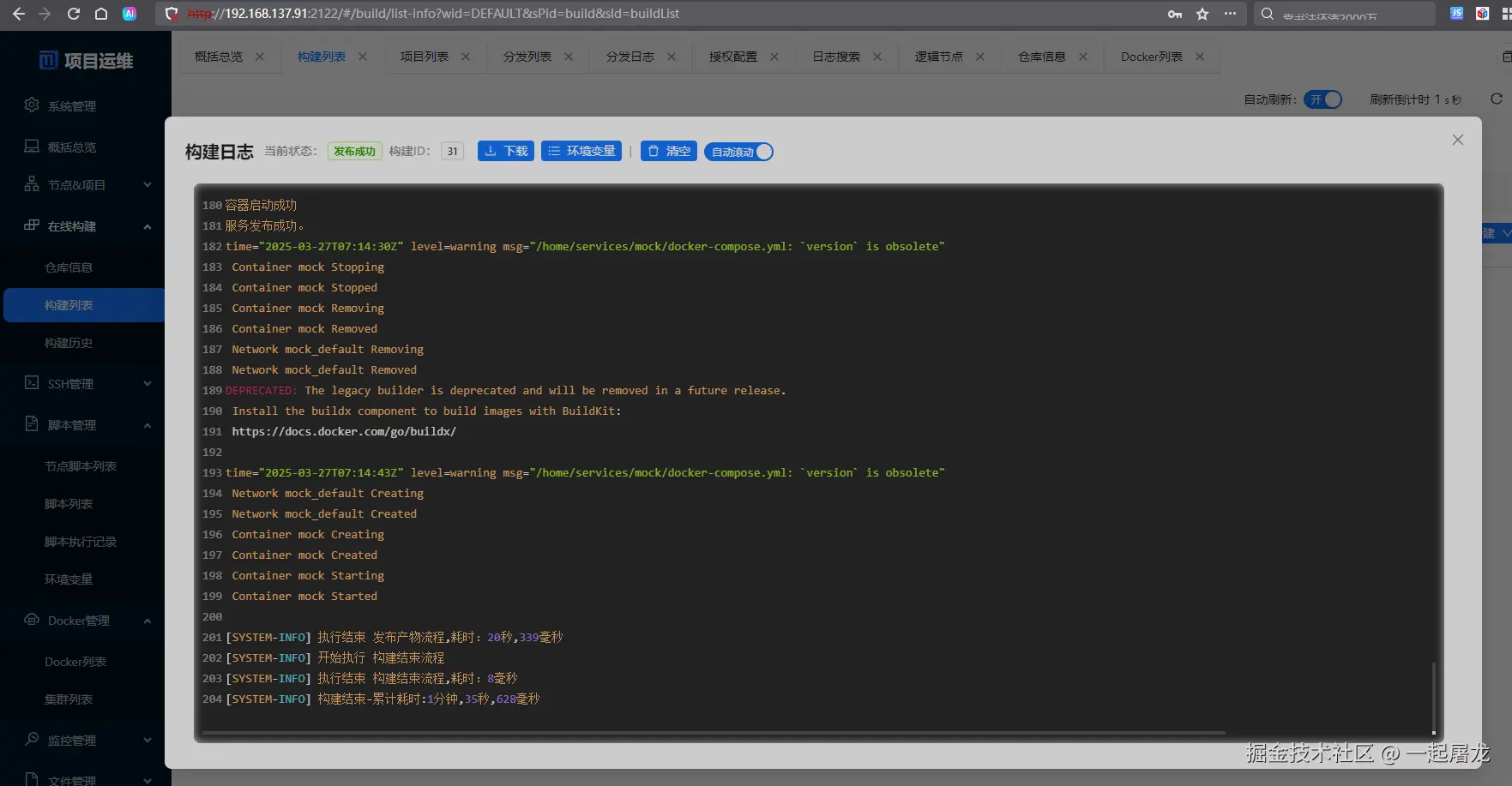 jpom产物遗留问题:Dockerfile接docker-compose.yml文件希望从源码拷贝到目标机器,但产物输出这块实现不了,有解决的xdm,麻烦给评下,多谢