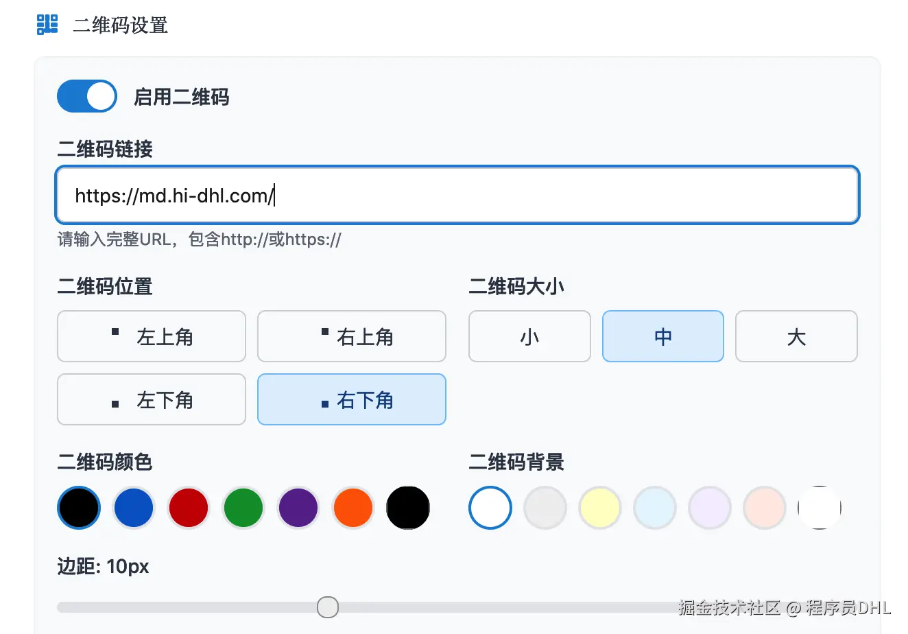 除此之外还可以自定义主题、背景、字体大小。尽情发挥你的创意,想怎么设计就怎么设计。除此之外,还支持添加二维码,可以按照自己喜好,改变二维码的样式、位置、大小、颜色。