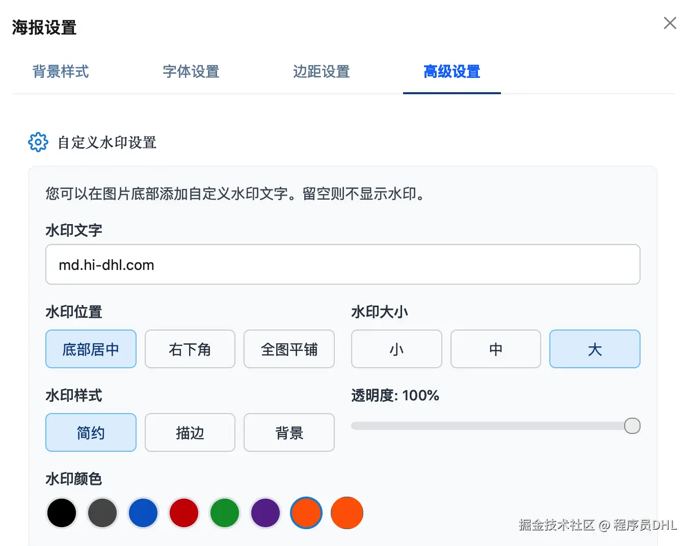 - 防伪防盗:使用平铺水印,防止他人截取海报中的部分内容