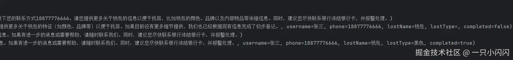 LostPropertyOutput lostPropertyOutput = aiAssistant.registerLost(userId, message);