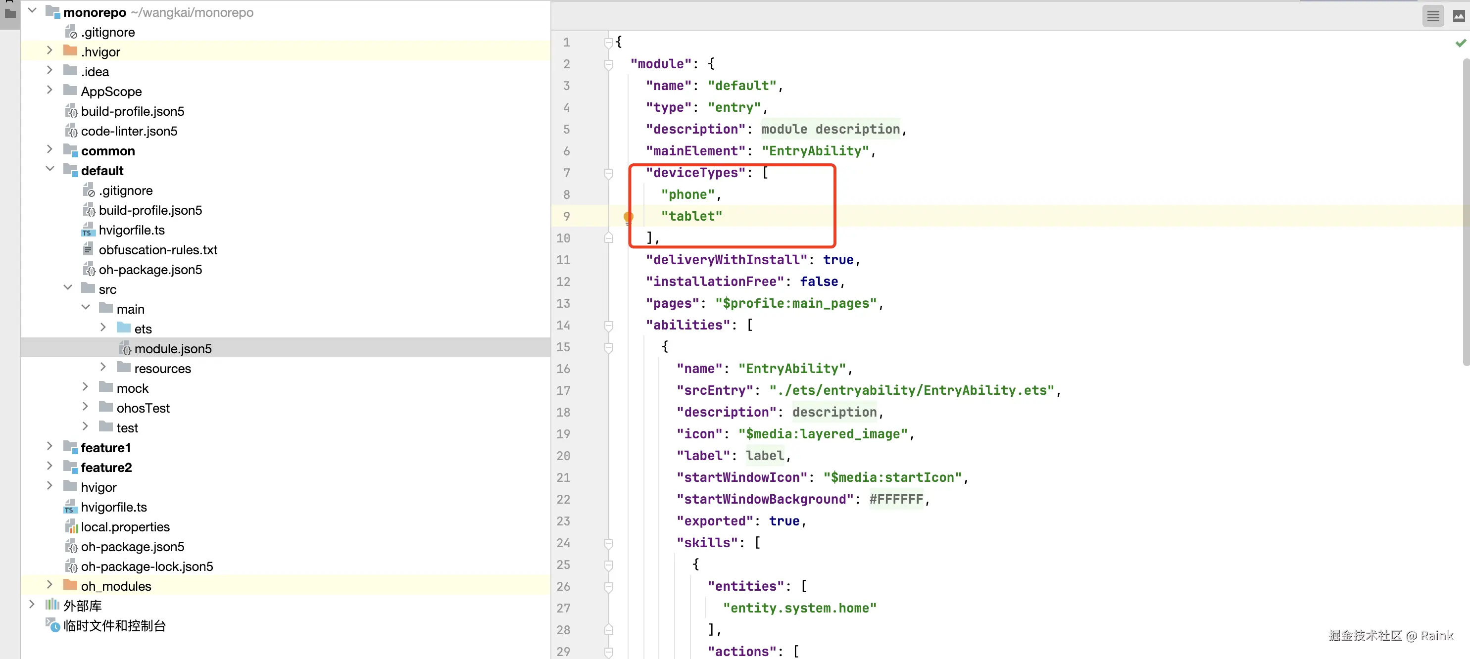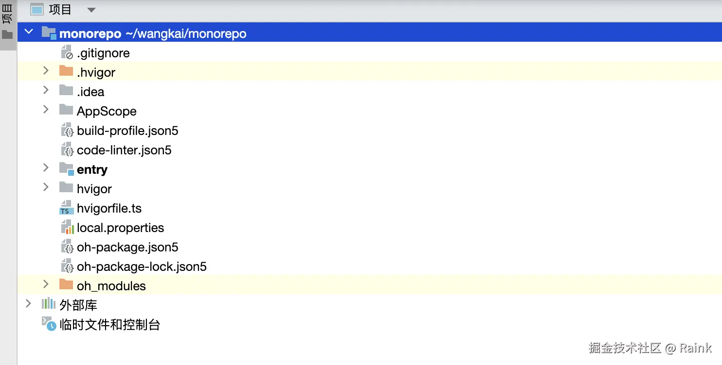 通常我们使用DevEco Studio直接创建的工程目录是这样的,只包含一个的entry类型的模块。