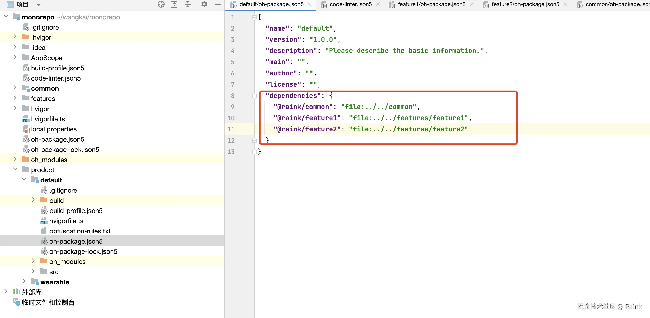 更推荐使用的common、features、product三层工程结构。也就是“一多”推荐的“三层工程结构”。工程结构示例如下所示: