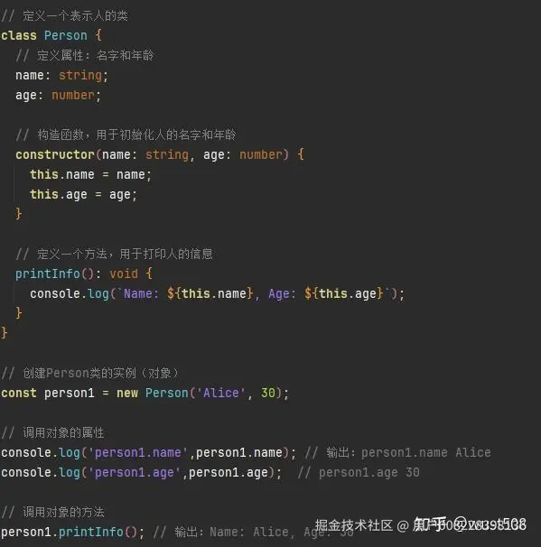 下图展示了如何在ArkTS定义类、创建对象以及调用对象的属性和方法。