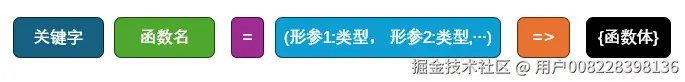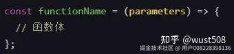 箭头函数使用=>符号来定义,其基本语法如下图所示。