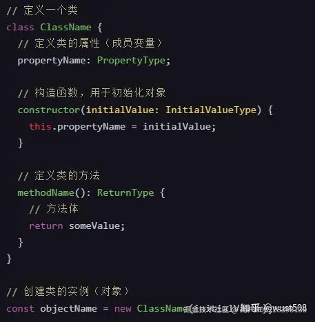 对象的定义和调用是编程的核心部分。对象是通过类(class)来定义的,而类的实例则是对象。对象允许我们将数据和操作这些数据的方法封装在一起。在ArkTS中,对象通常是通过类来定义的。类是一个蓝图,它描述了对象的属性和方法。下图是定义类和对象的基本语法。