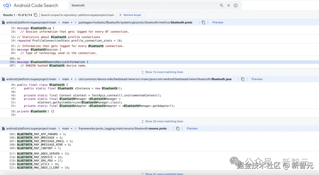 一些附属功能,比如蓝牙功能,仍然在 AOSP 分支中公开开发,你可以在开源的 Android Code Search 中搜索到相关源代码。
