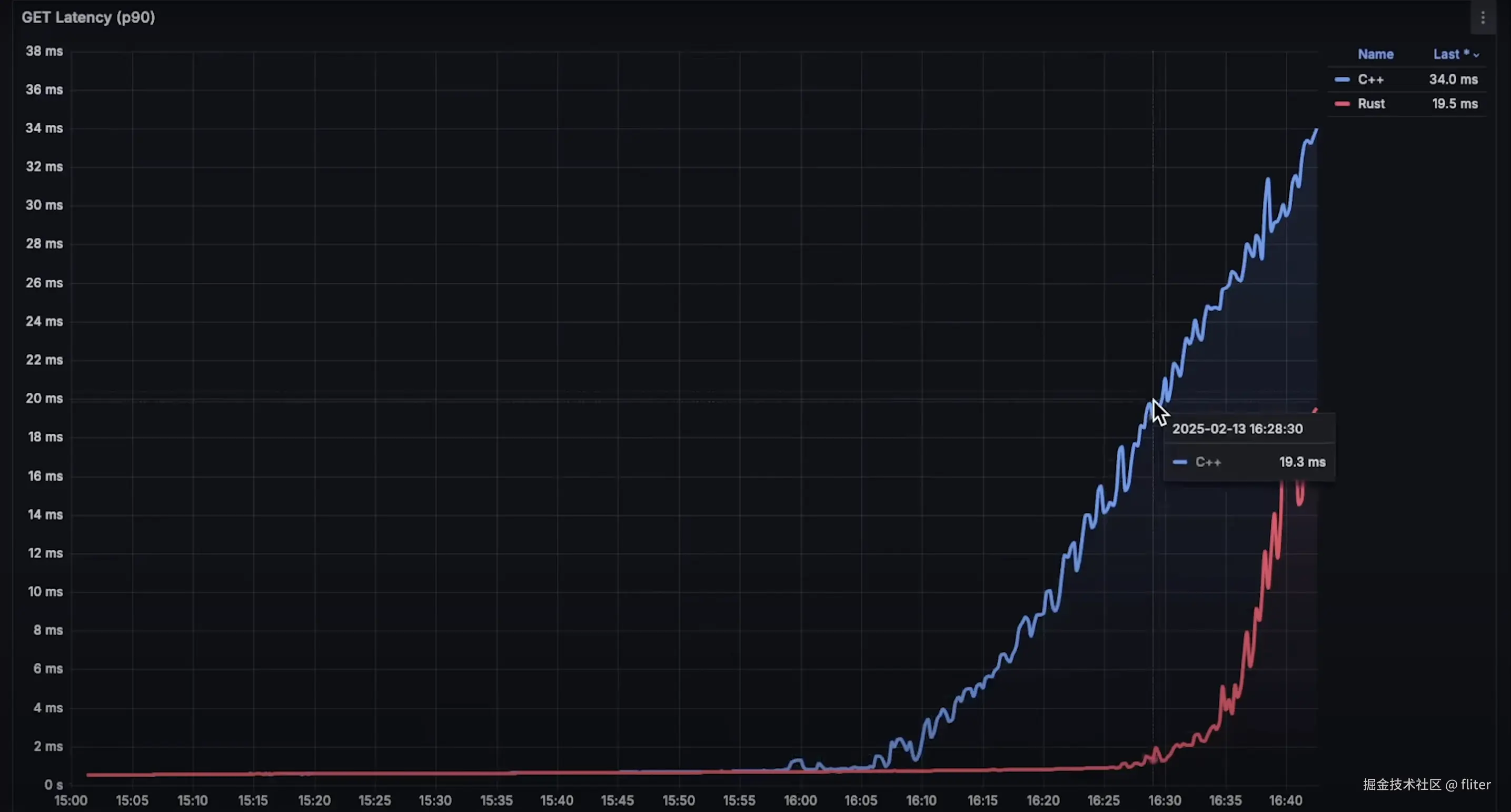这次 Rust 表现更好,相比于之前 Rust vs. Go 的基准测试有所提升,