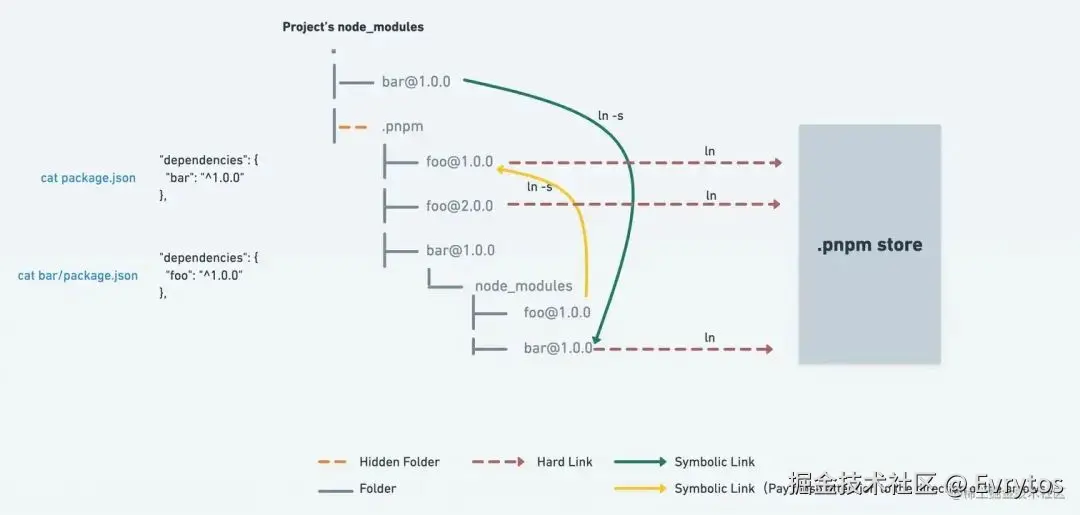 对于重复的子依赖,Pnpm 利用链接解决了这个问题。
